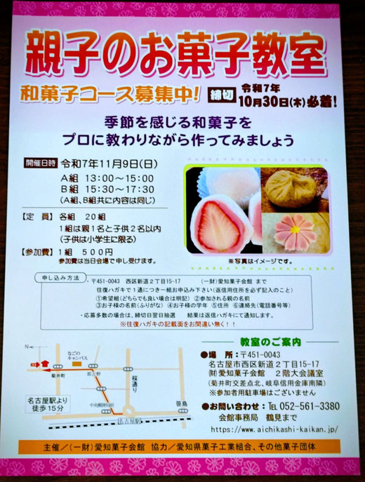 愛知菓子会館恒例の親子のお菓子教室(今回はおやつ菓子コース)は10月12日を締切としていましたが、募集人員に達しませんでしたので、応募締め切りを延長することにしました。